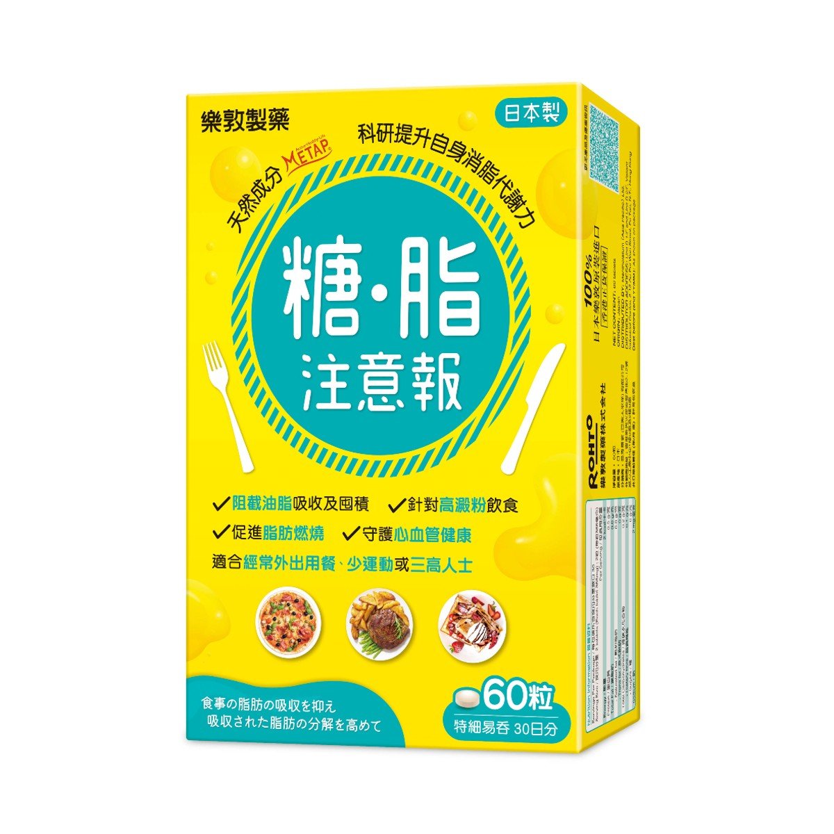 天然成分METAP 科研提升自身消脂代謝力 阻截油脂吸收及囤積 針對高澱粉飲食 促進脂肪燃燒 守護心血管健康 適合經常外出用餐、少運動或三高人士